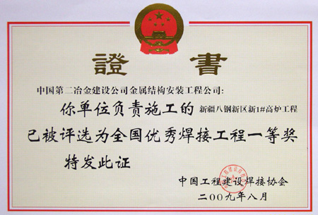 新疆八一鋼廠新1號、2號、3號高爐工程位于新疆烏魯木齊八鋼新區,三座均為2500立方米高爐,每座年產生鐵200萬噸。從2006年底開工至2011年7月底全部投產,中國二冶承擔三座高爐主體項目施工。